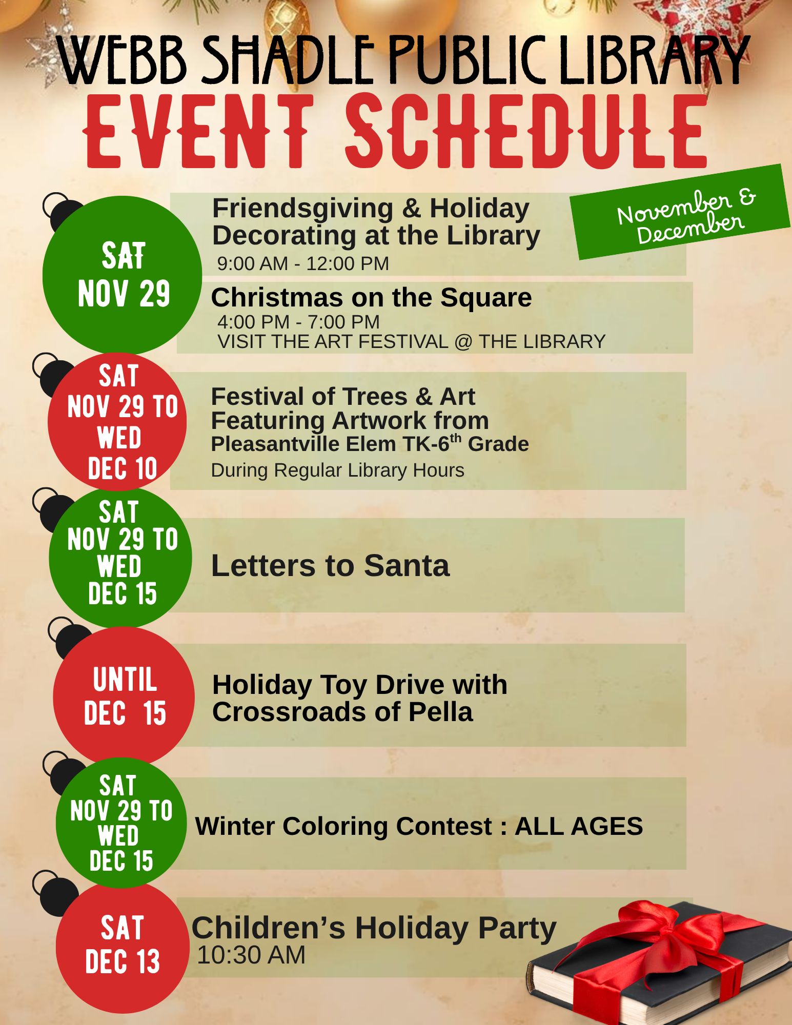 Our next book club will be held on January 26th at 1 PM at the Webb Shadle Public Library. Bring your favorite read and join us for this enjoyable book club adventure!